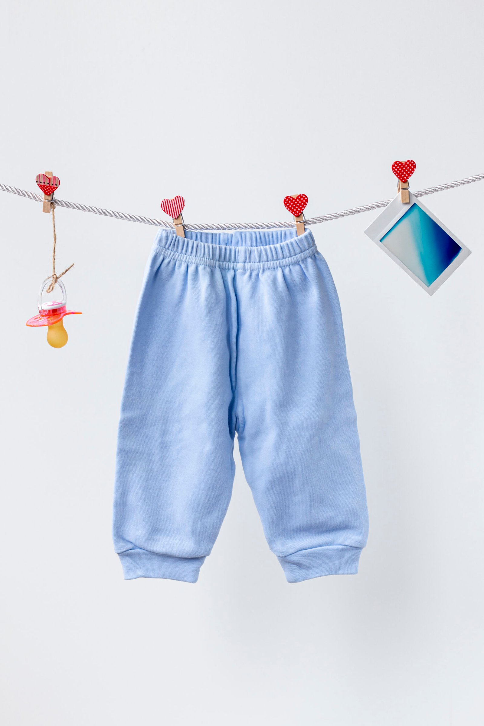 Un pantalon doux et pratique, cousu main dans un tissu récupéré, pour habiller les enfants en douceur.
